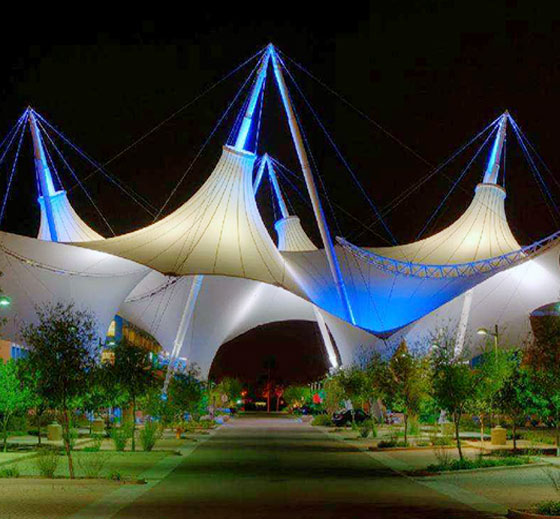 濰坊樺森膜結構工程有限公司是從事膜結構工程的設計、制作、安裝、維護于一體的企業,膜結構建筑風格獨特,藝術性強,具有濃厚的現代氣息,廣泛應用于體育場館、高速公路收費站、加油站、大型停車場、博覽會展廳、公共場所、休閑場所、景區裝飾等。